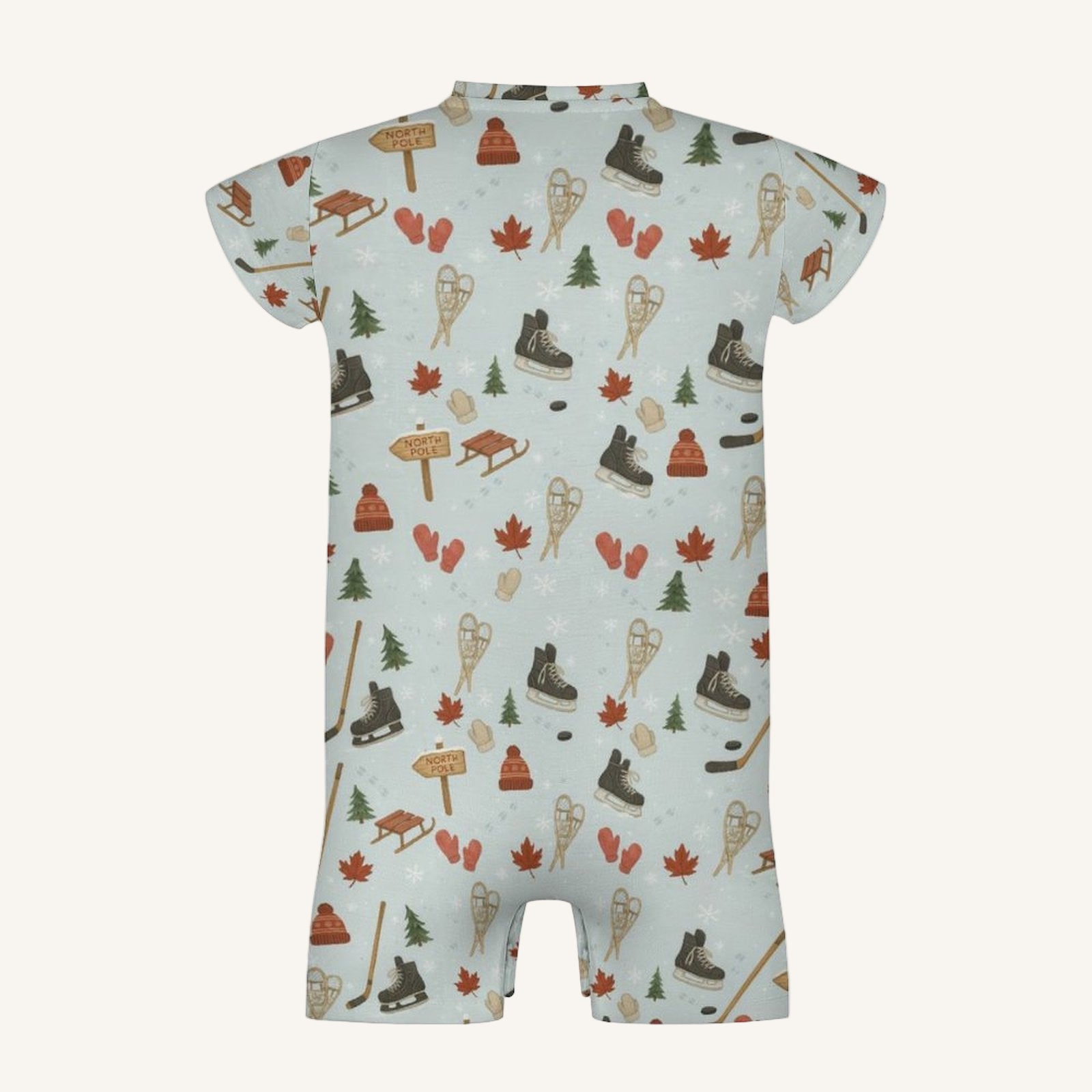 All-Over Print: Features our Cold Hands Warm Hearts pattern — outdoor adventures, woolly mittens, and a path to Santa's workshop.