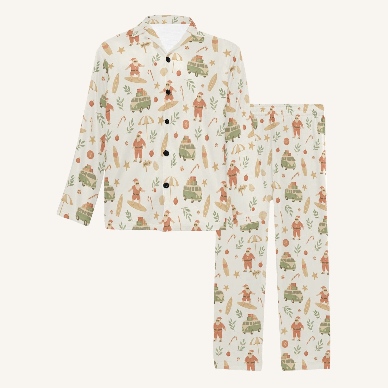 Comfortable, classic, and made for the joyful magic of Christmas morning — the Surfing Santas Men’s Button Down Pajama Set brings easygoing style and warmth to every festive moment.